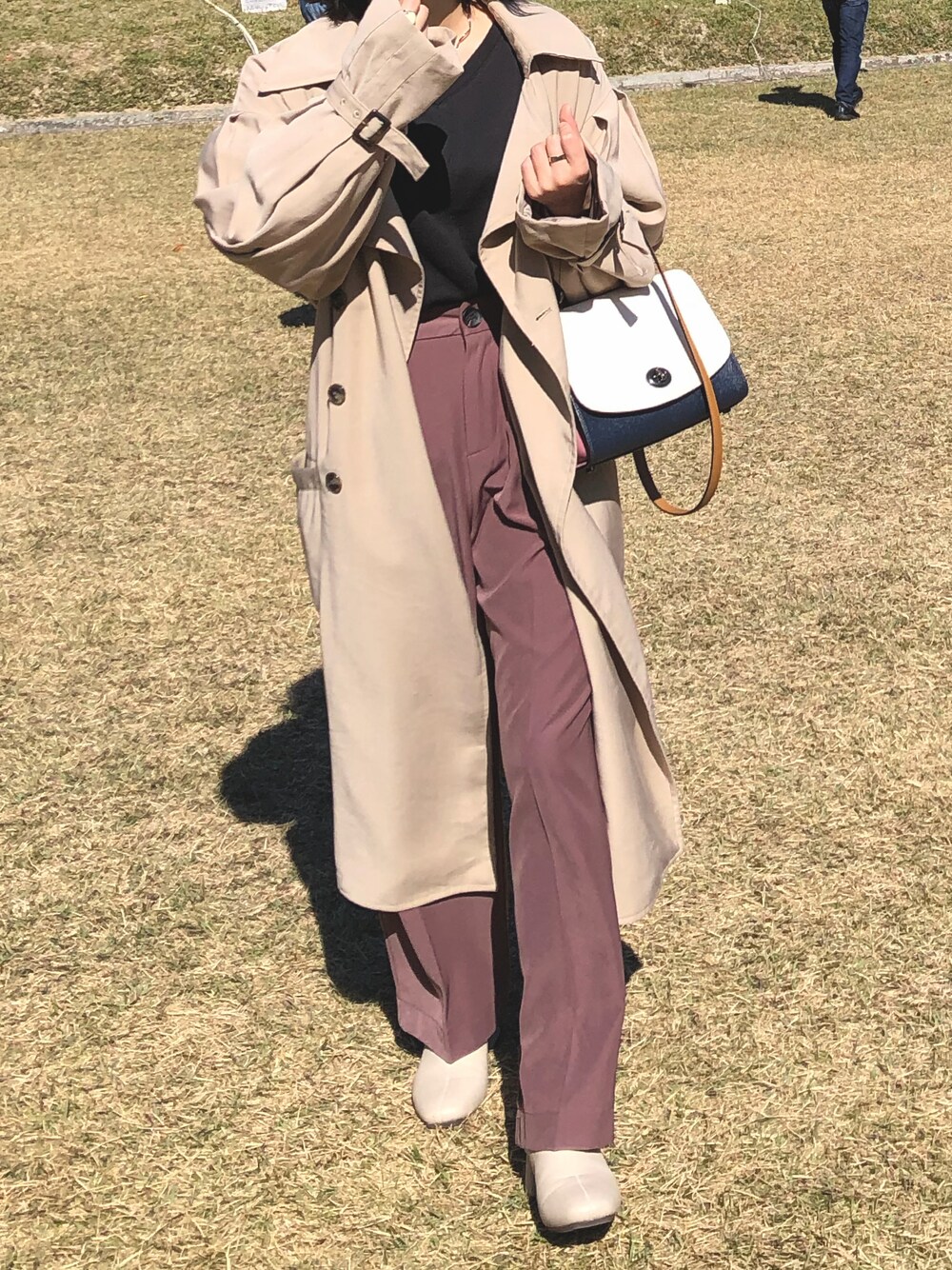 秋もトレンチコートを着たい! 淡い色合いの服も、どこかに黒を入れると一気に締まって見えるから便利よね✨