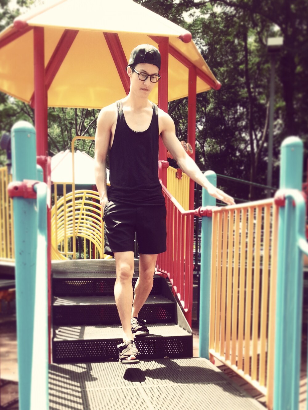 Take a walk with casual all black outfit on a sunnu Sunday