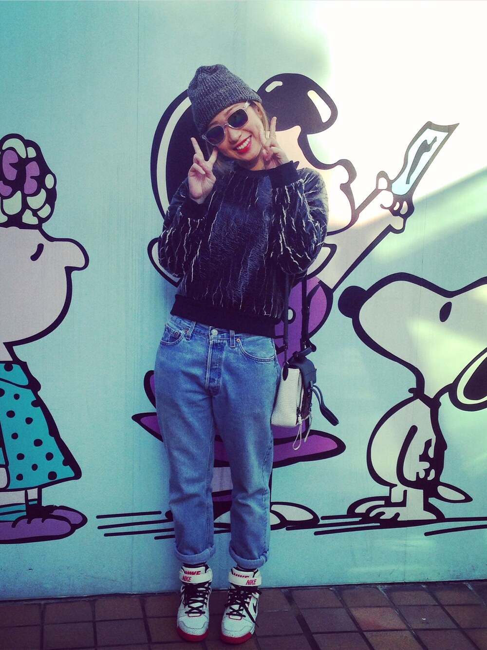 Beanie: Beams Sweatshirt: 3.1 Phillip Lim Pants: Levi's 501 Shoes: Nike Handbag: 3.1 Phillip Lim