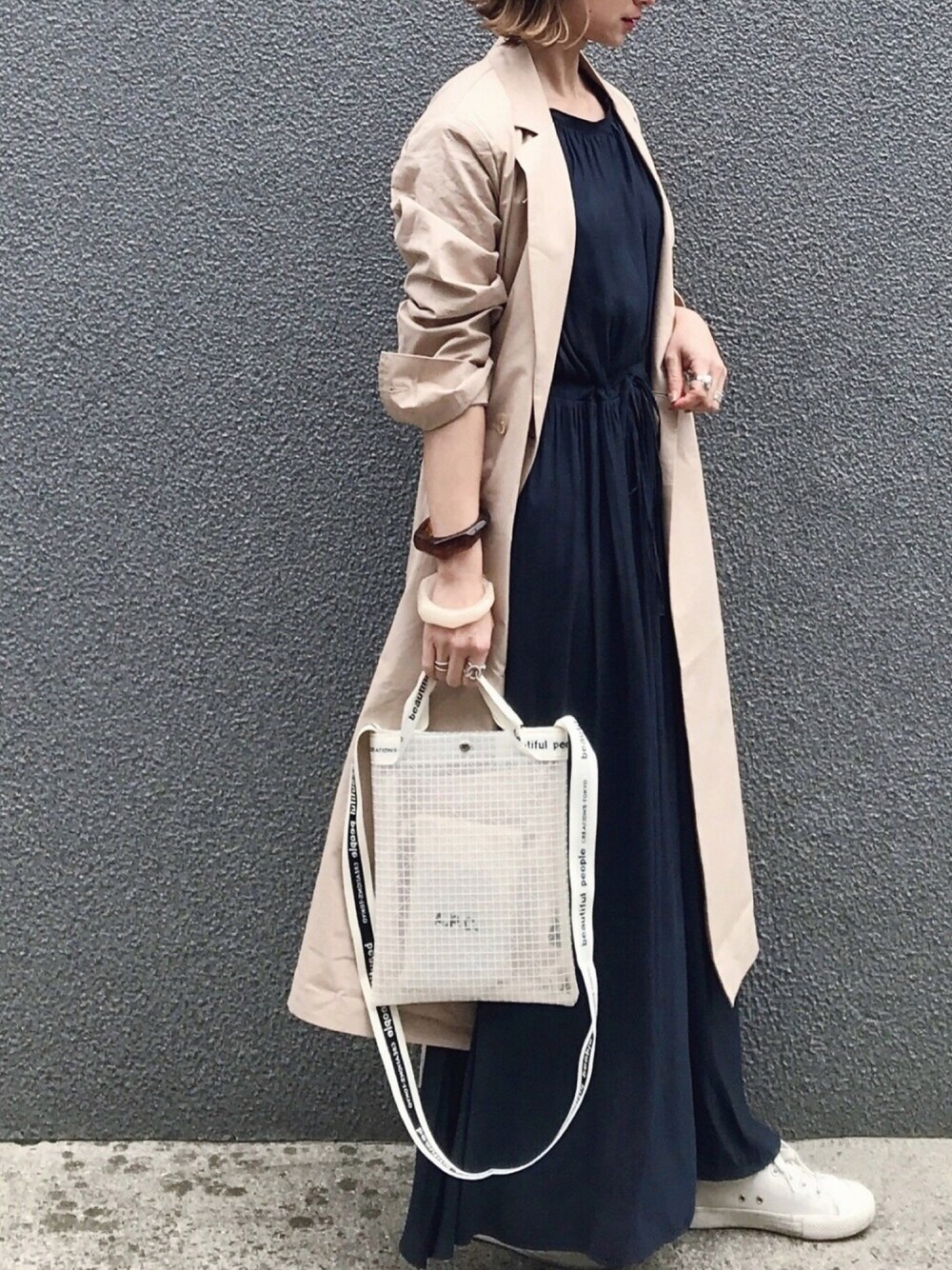 SIZUのトレンチコート「ベルトSETバックプリーツコート」を使ったコーディネート