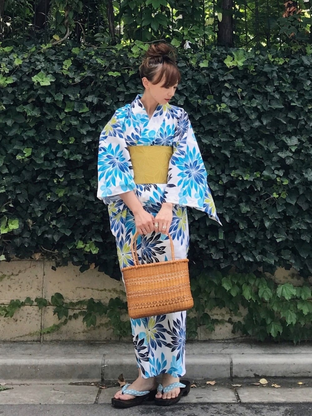 SIZUの浴衣「選べるレディース浴衣3点セット (浴衣+帯+下駄)」を使ったコーディネート