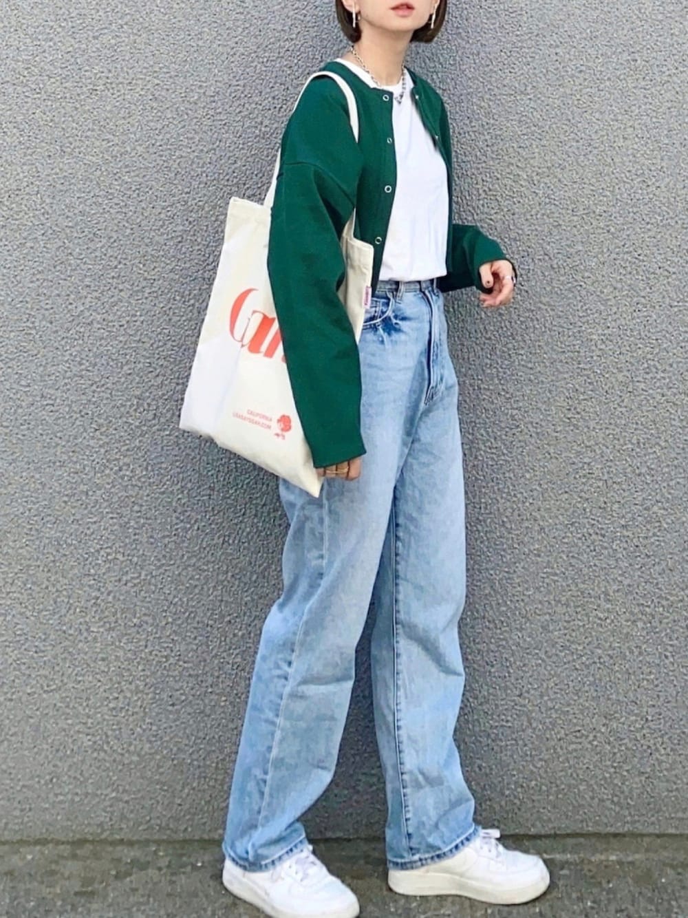 SIZUのカーディガン/ボレロ「綿ストレッチリブ スナップボタンショート2WAYカーデ」を使ったコーディネート