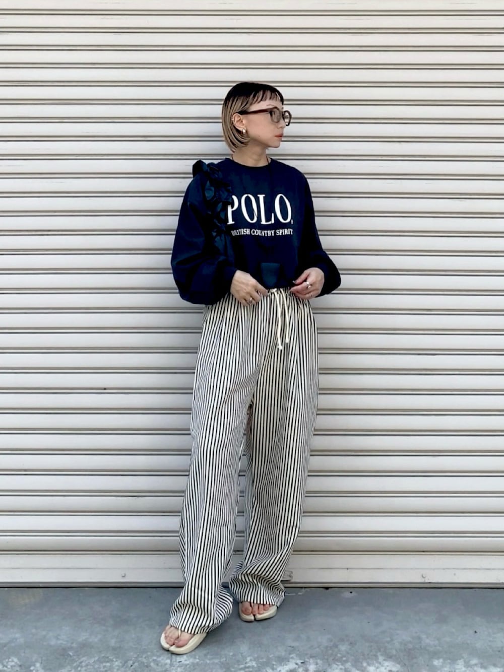 SIZUのその他パンツ「2026年新作ドット柄登場!夏に大活躍!ライクストライプセミワイドパンツ」を使ったコーディネート