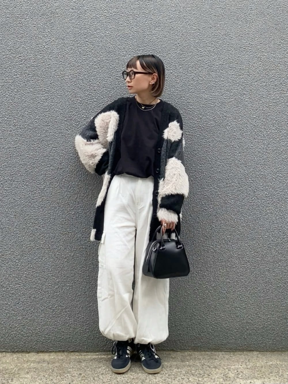 SIZUのカーディガン/ボレロ「異素材MIXVネックカーディガン」を使ったコーディネート