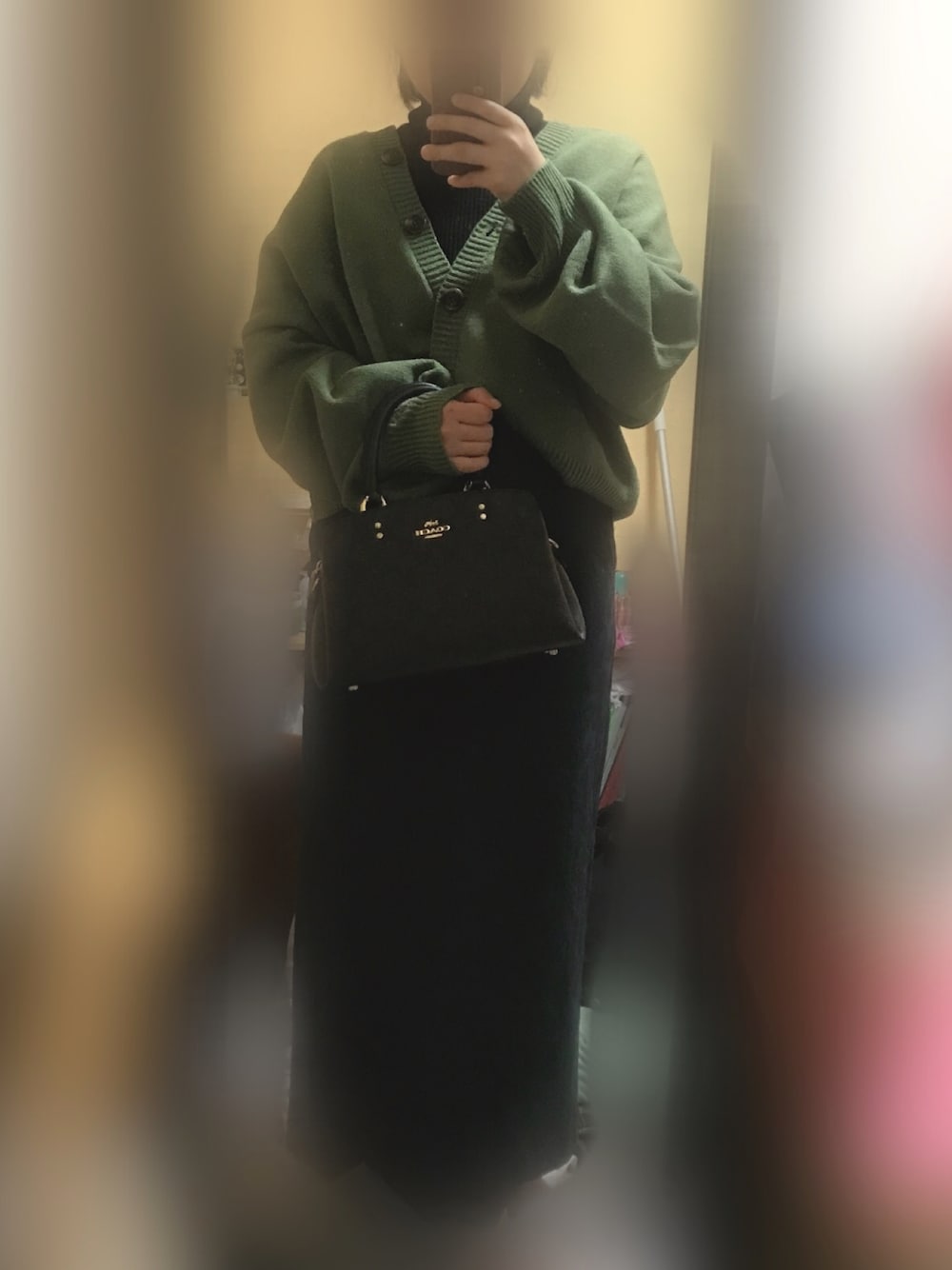 今回はグリーンのペンシルスカートでグリーン×グリーンのコーデ! 明日からまた雪が降るほど寒くなるそうですね!こんな格好して外に出たら凍えちゃいそう…グリーンのカーディガン手に入れたのにな… 中に着込んで、上からロングコート着ます✨