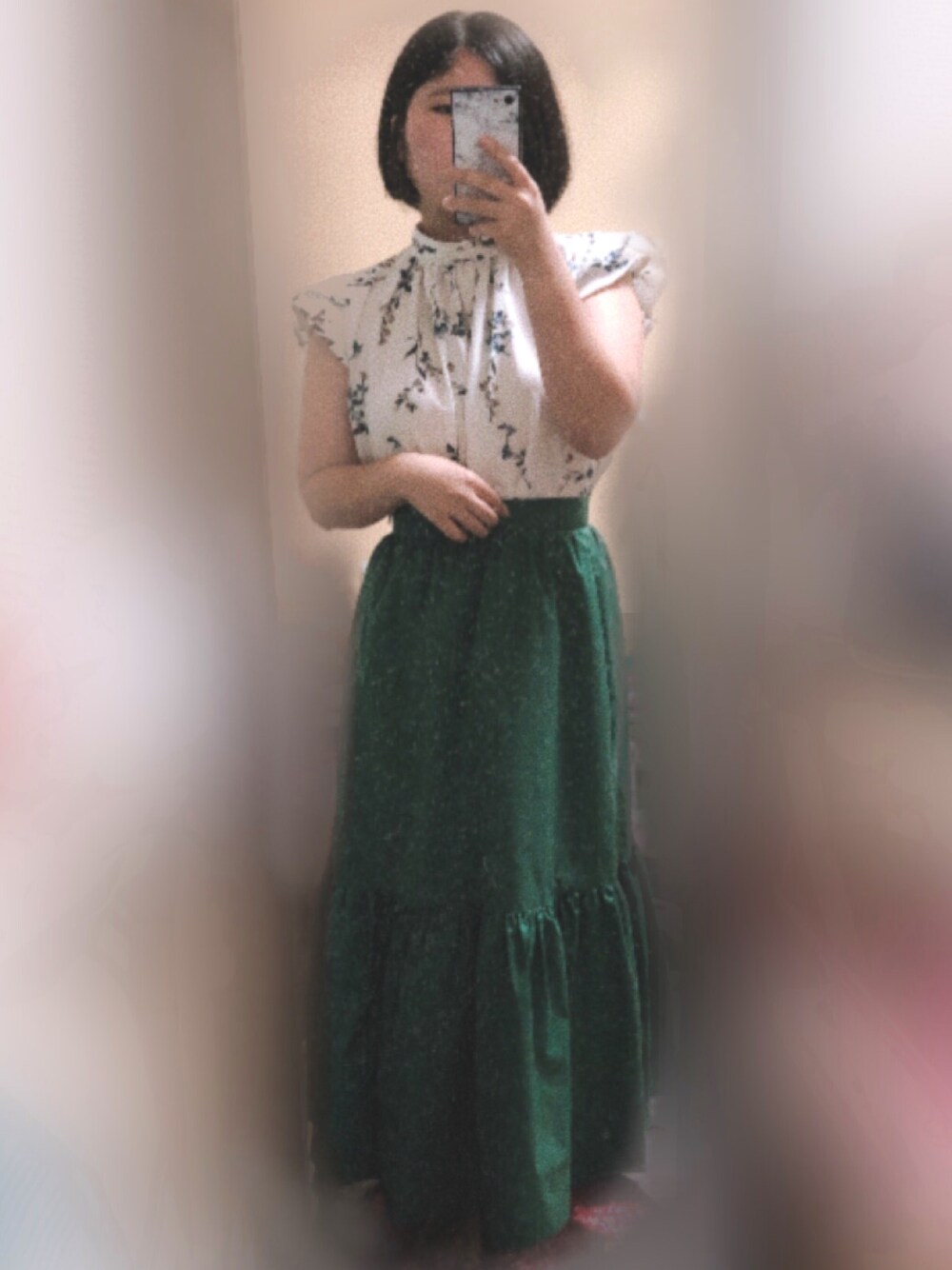 花柄ブラウス×グリーンのティアードスカートのコーデ♥︎︎∗︎*゚ このスカートはほんと可愛くてマーメイド🧜♀️みたいな気分になる⤴︎