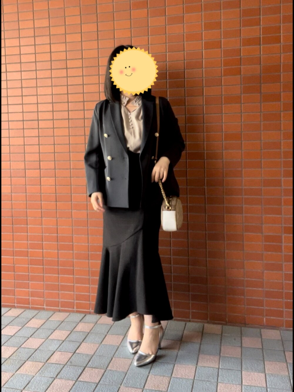 骨格ストレートさん、大勝利コーディネート☝️ 今日は帰省します!外は暑いのでなるべく薄着で。 ベーシックなカラーでコーディネーしてみました! スカートはプロポーションボディドレッシングのラメ入りツーイドのマーメイドスカートです✨アシメになっているところが足を細く見せてくれます♥︎︎∗︎*゚