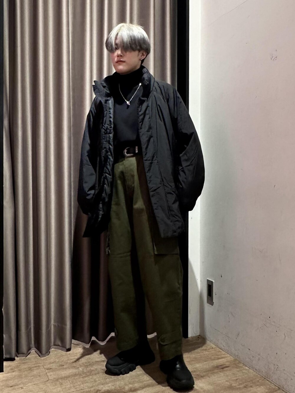 モード感を残しつつクールなミリタリーカーゴパンツでまとめたコーデです。 昨今ミリタリーアイテムが注目を集めていますが、ミリタリーアイテムはカジュアルコーデ以外でも活躍することが出来ます! 上半身はアウターを脱ぐとタイトなシルエットのタートルネックニットで、オーバーサイズのアウターでカジュアル感を出しつつアウターを脱げばメリハリをつけたシルエットになり一気にモードな印象にもなります! 普段カジュアルコーデを着ないという方でも参考になるようなコーディネートになりました。 ----------------- スタッフ情報 身長: 167cm 骨格: ナチュラル ----------------- ※商品のカラーは実際と異なるためECサイトをご覧下さい。