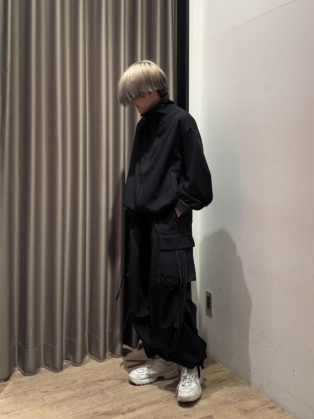 今期新作のスタンドカラーブルゾンとパラシュートカーゴパンツで組んだ、サブカル系のサイバーセットアップコーデです。 刺さる人には刺さるデザインのアイテムがセットアップになっていて、それぞれ単体でも素敵なのですが、セットアップにすると一気にこなれ感のあるコーディネートになります! コーデの組み合わせを考えなくてもいいのがセットアップのいいところだとスタッフ的には思います。 サブカルっぽいアイテムが欲しいけど、何から買えばいいのか分からない…という方には、まずこのセットアップを買っていただければ他にも色々なアイテムと組み合わせることが出来ておすすめです! ----------------- スタッフ情報 身長: 167cm 骨格: ナチュラル ----------------- ※商品のカラーは実際と異なるためECサイトをご覧下さい。