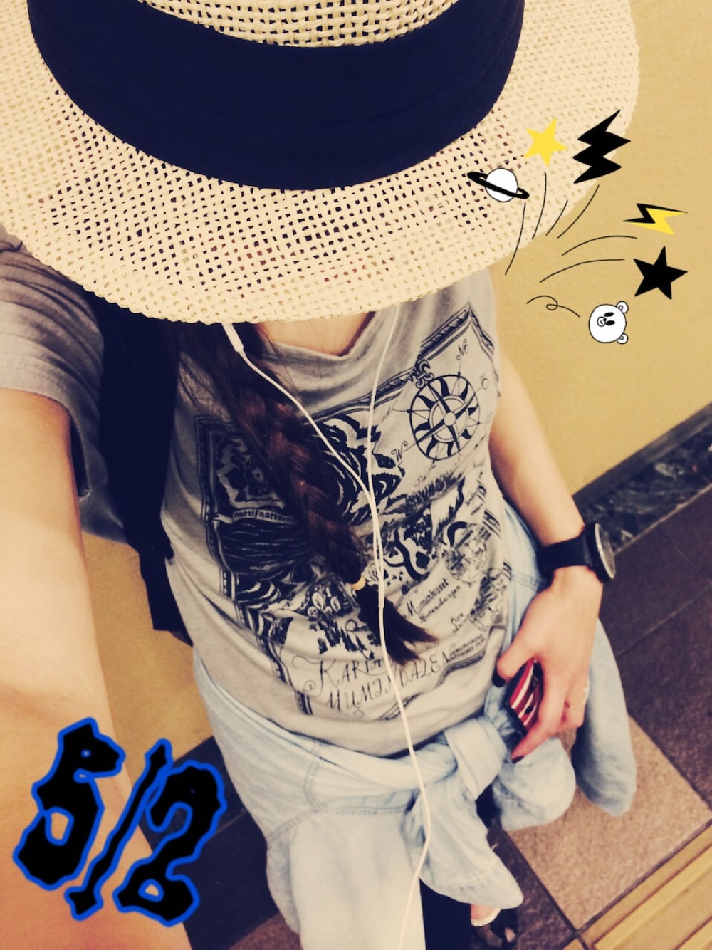 「夏ですね」と言われた服装 朝はこれでも暑かったのに、夜はシャツ羽織っても寒いから嫌んなっちゃうね