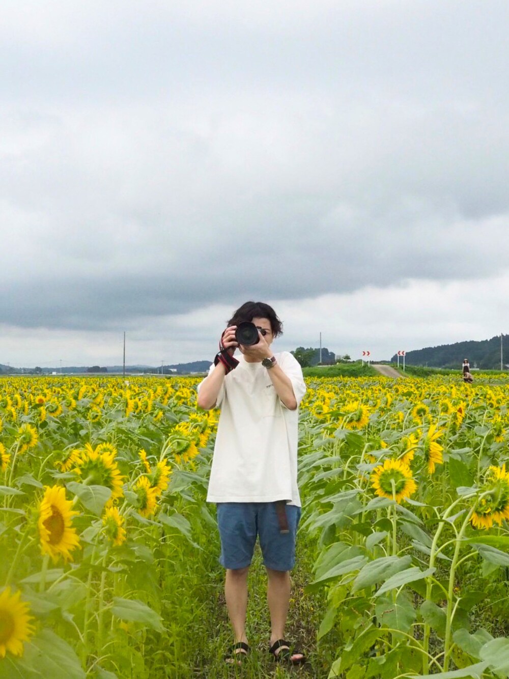 夏コーデ🌻 . in ひまわり畑 . 今年はブルーのハーフパンツ大活躍でございました! . 投稿頻度は全く変わらずまったりやっていきたいと思います〜
