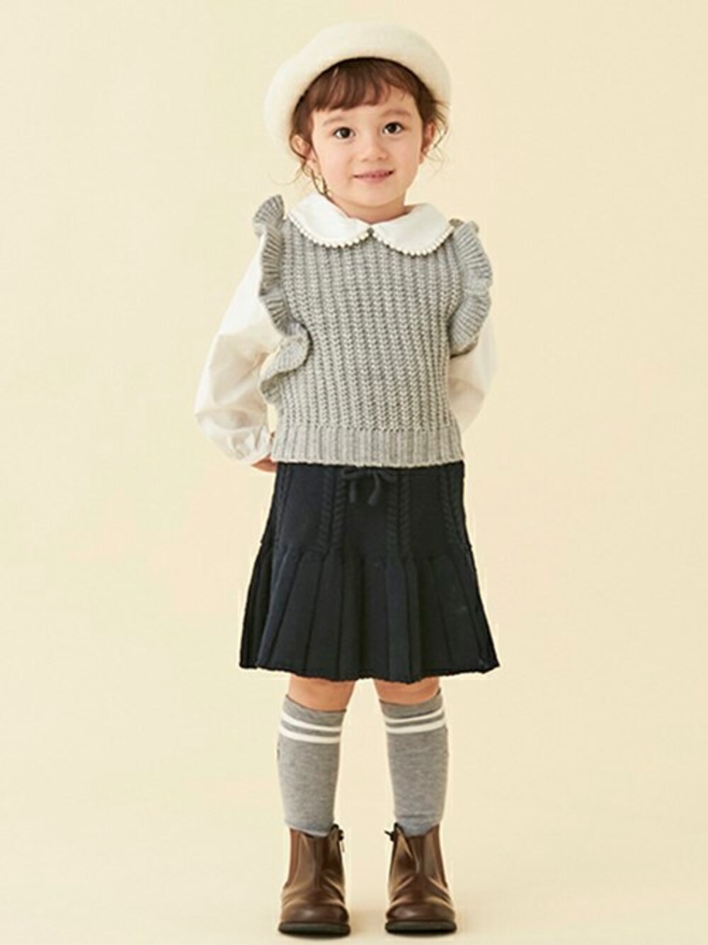 petit main・b-room(Lovetoxic ららぽーと安城)のシャツ/ブラウス「【リンク】パールニットドッキングトップス(キッズ)」を使ったコーディネート