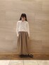 スカートは155cmの私でも ペタンコサンダルと合わせて 丈感全然大丈夫でした😊 オケージョンでも使えそうな キレイめコーデでスカートは ボリューム感ありながらも着ぶくれしないシルエットでお洒落感もバッチリです! シャツは後ろのシルエットが可愛くて パンツ合わせもオススメですよ☺️