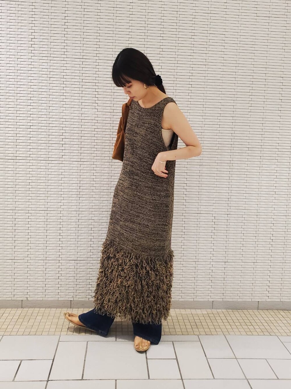 sakiのワンピース「ループフリンジニットワンピース」を使ったコーディネート