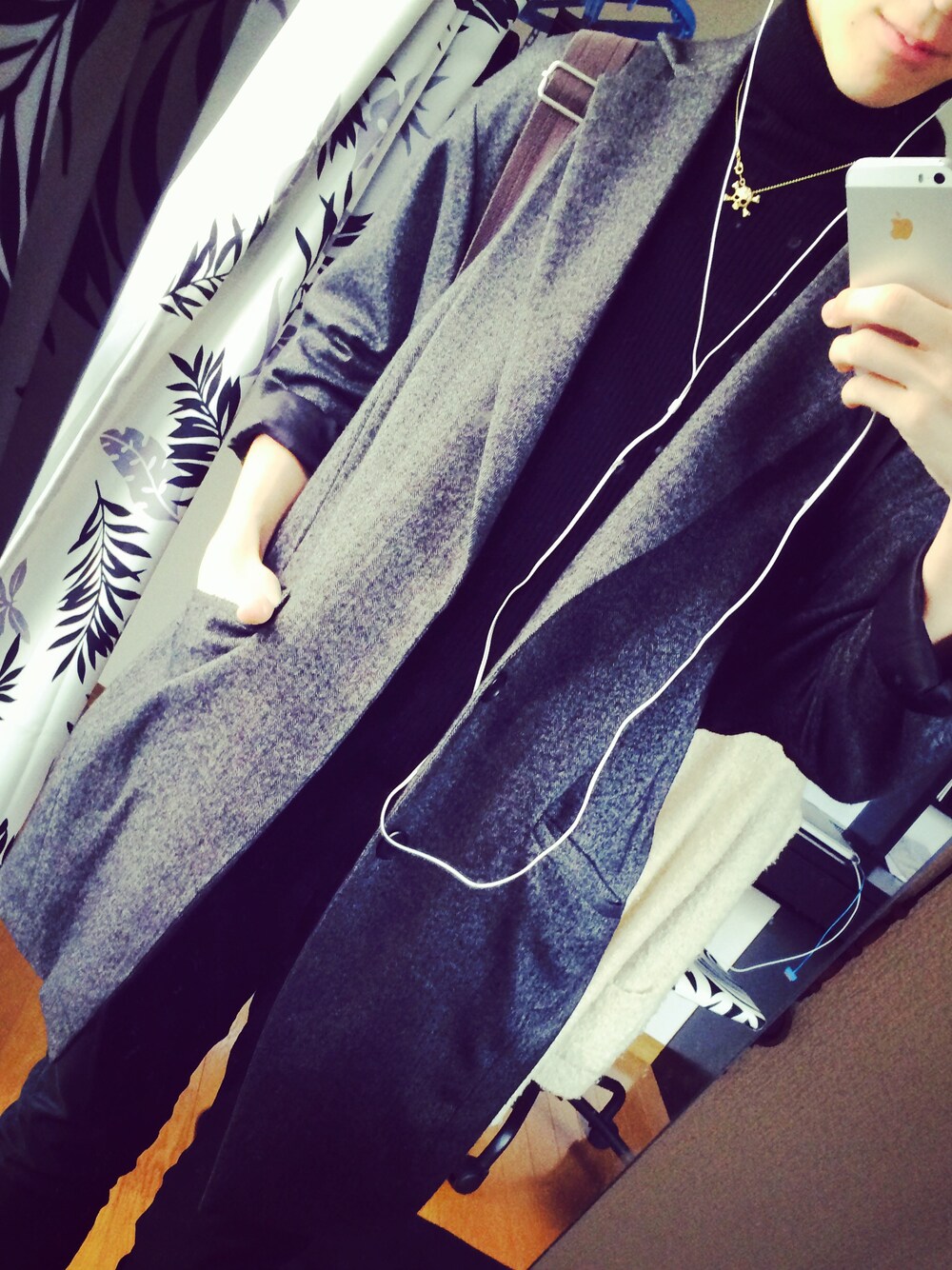ブラック系のその他アウターを着用したメンズの春コーディネートの1枚目の写真