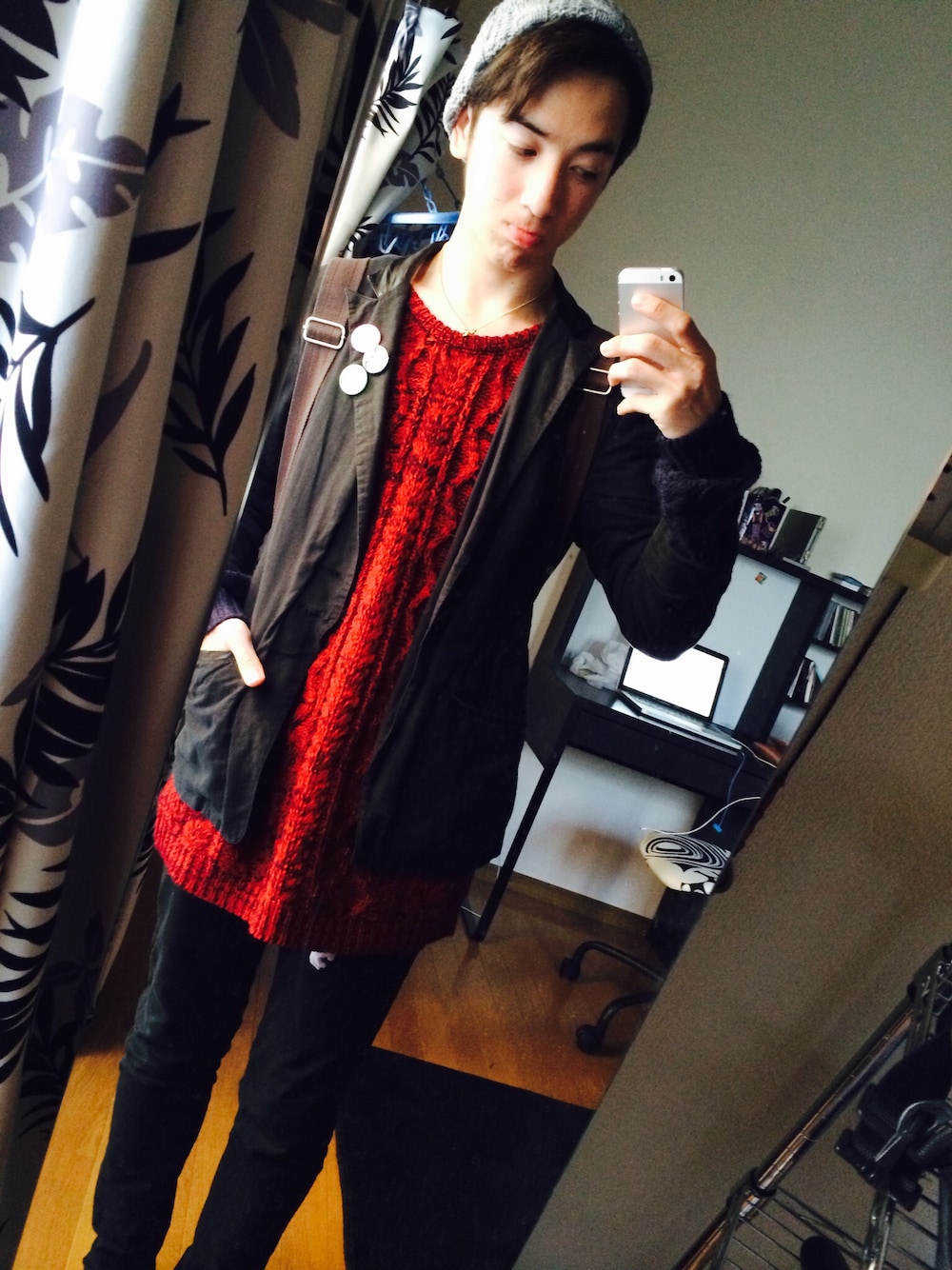 その他のニット/セーター、グレー系のニットキャップ/ビーニーを着用したメンズの春コーディネートの1枚目の写真