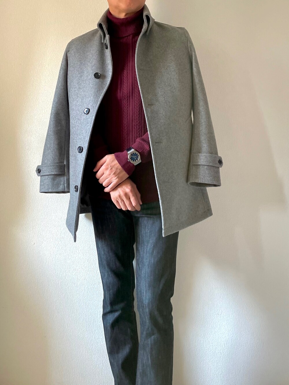<私的冒険> サラッと赤とかボルドー着れるとカッコいいなと思いつつなかなかトライできなかったヤツ🥴 #ニットon時計