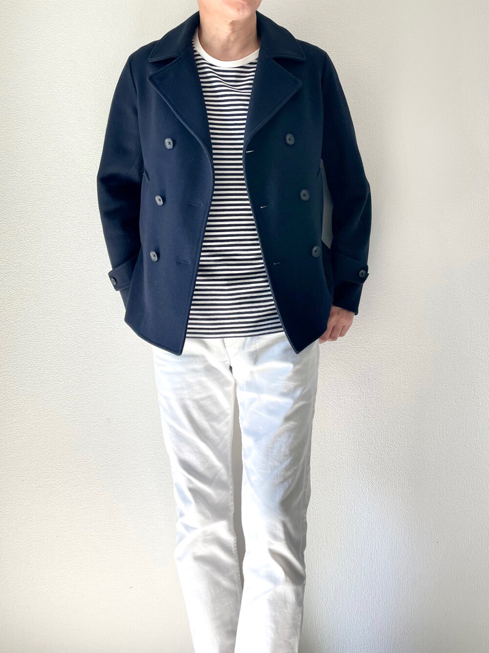 <マリンコーデ冬ver.> 分厚いメルトンPコートで 晴天の週末魚介パスタ食べにドライブ行きたくなりますね☺️