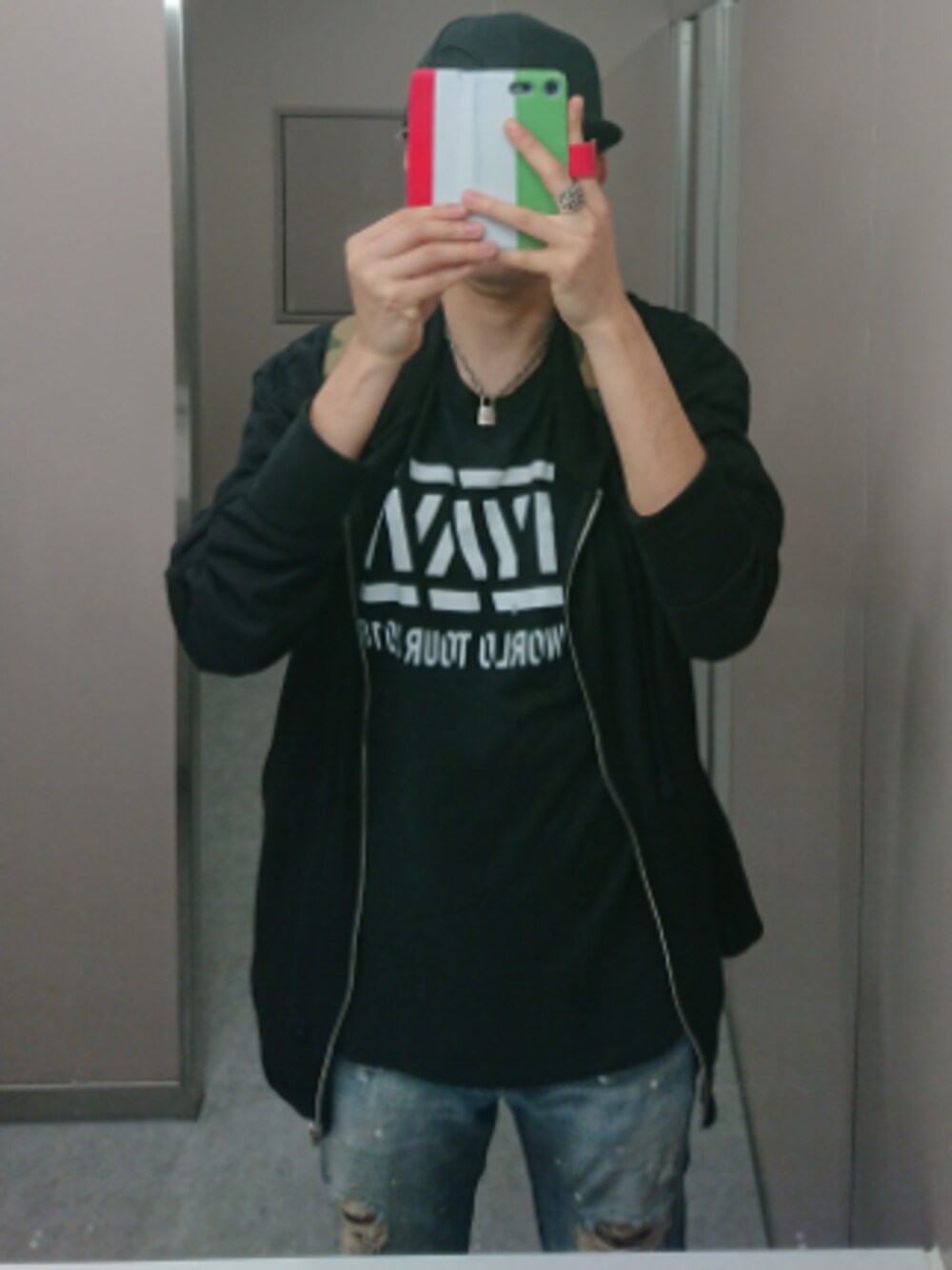 先々週の週末位のコーデ。 ロングパーカーとMIYAVIのTシャツ、クラッシュデニムを合わせてみました。 クラッシュデニムのシーズンに入りましたね。
