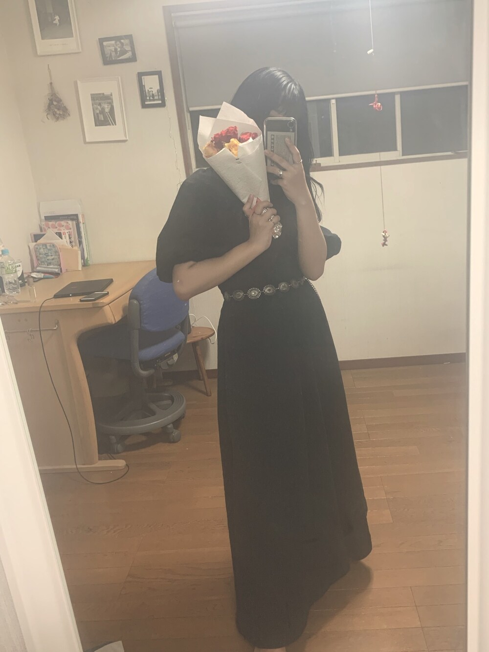 zzkaのワンピース「バックオープンパフスリーブワンピース/ロングワンピース」を使ったコーディネート