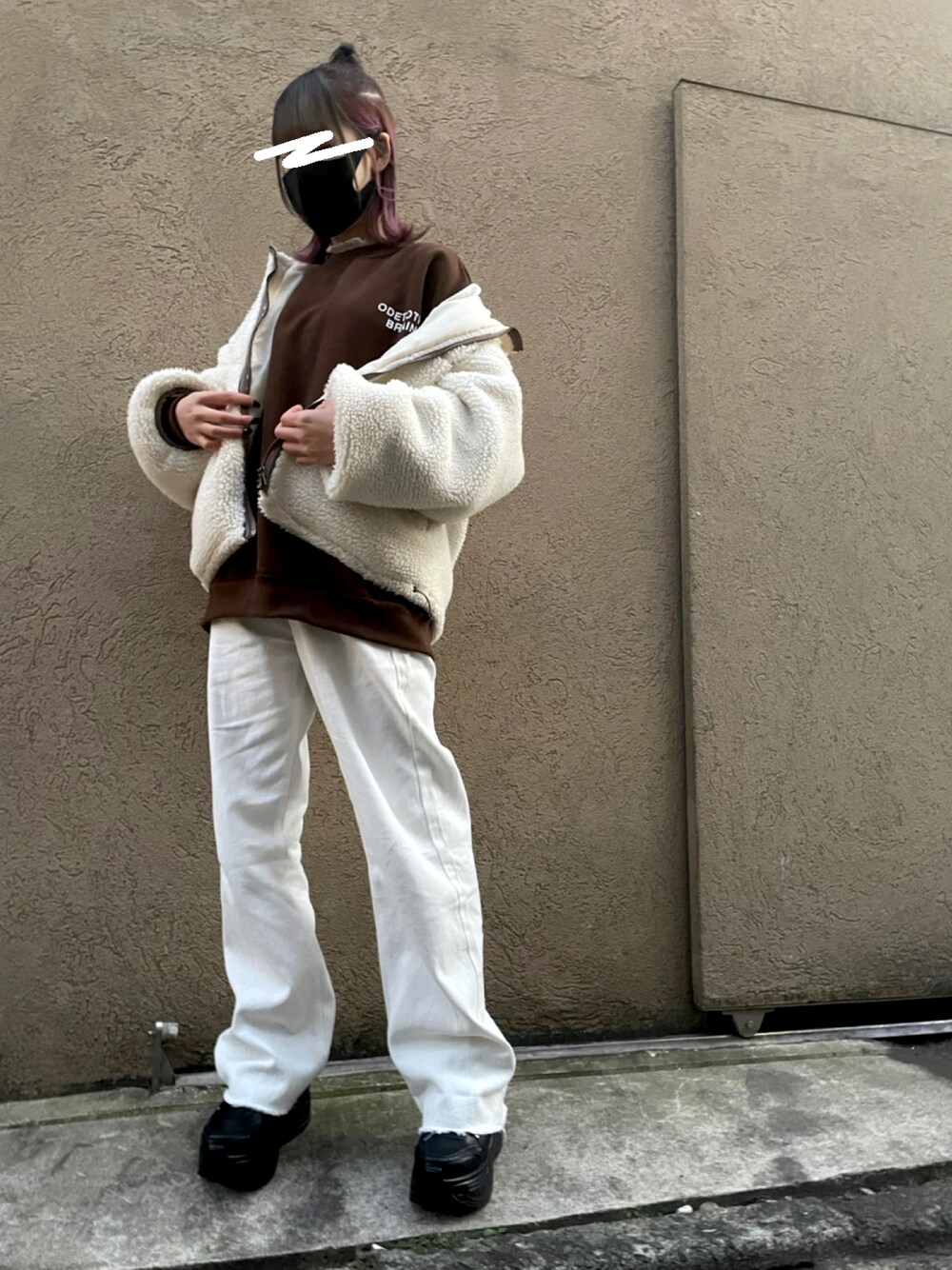 ホワイトデニムに挑戦した日😌🫶 髪型もコーデに合わせてハーフアップのおだんご👧🏻💈 ブラウンのトップスがブルゾンから見えて可愛い🤎 ----------------------------- Instagram @_022l_
