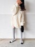 ホワイト系のニット/セーター、ブラック系のハンドバッグ、ホワイト系のバレエシューズを着用したレディースの春コーディネートの2枚目の写真