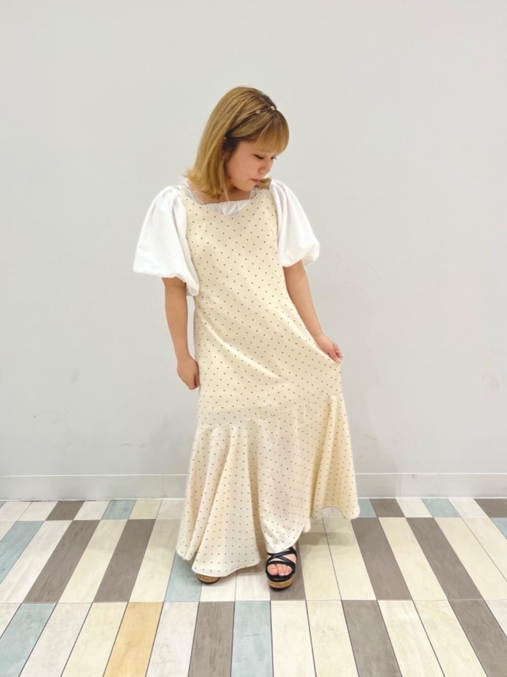 流行りのキャミワンピ、ドット柄でとっても可愛いです♡低身長さんでもアジャスターで長さを変更していただくと、丈感気にすることなく着ることができます☺️トップスの袖もシルエットが可愛いのですが、なんと2wayで着ていただけます!