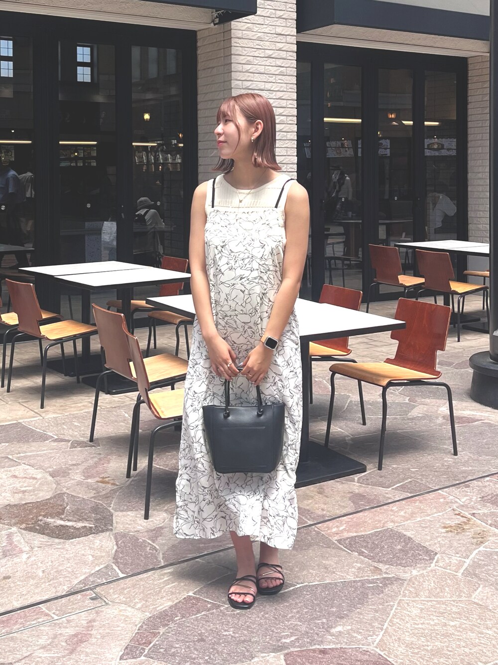 コーディネートに迷ったときはキャミワンピースで簡単にコーディネート👍🏻 柄が入っているのでシンプル過ぎず着こなせます!!