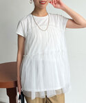 いつきのTシャツ/カットソー「チュール重ねカットチュニックプルオーバー」を使ったコーディネート