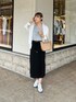トレンドのシアーで後ろ姿まで可愛いシャツ✨️ 袖は5分袖になっているので、気になる二の腕もカバーできます! スカートはワッフル素材なので、とても履き心地もよく、後ろにスリットが入っているので歩きやすいです🚶♀️