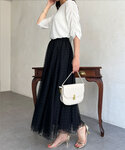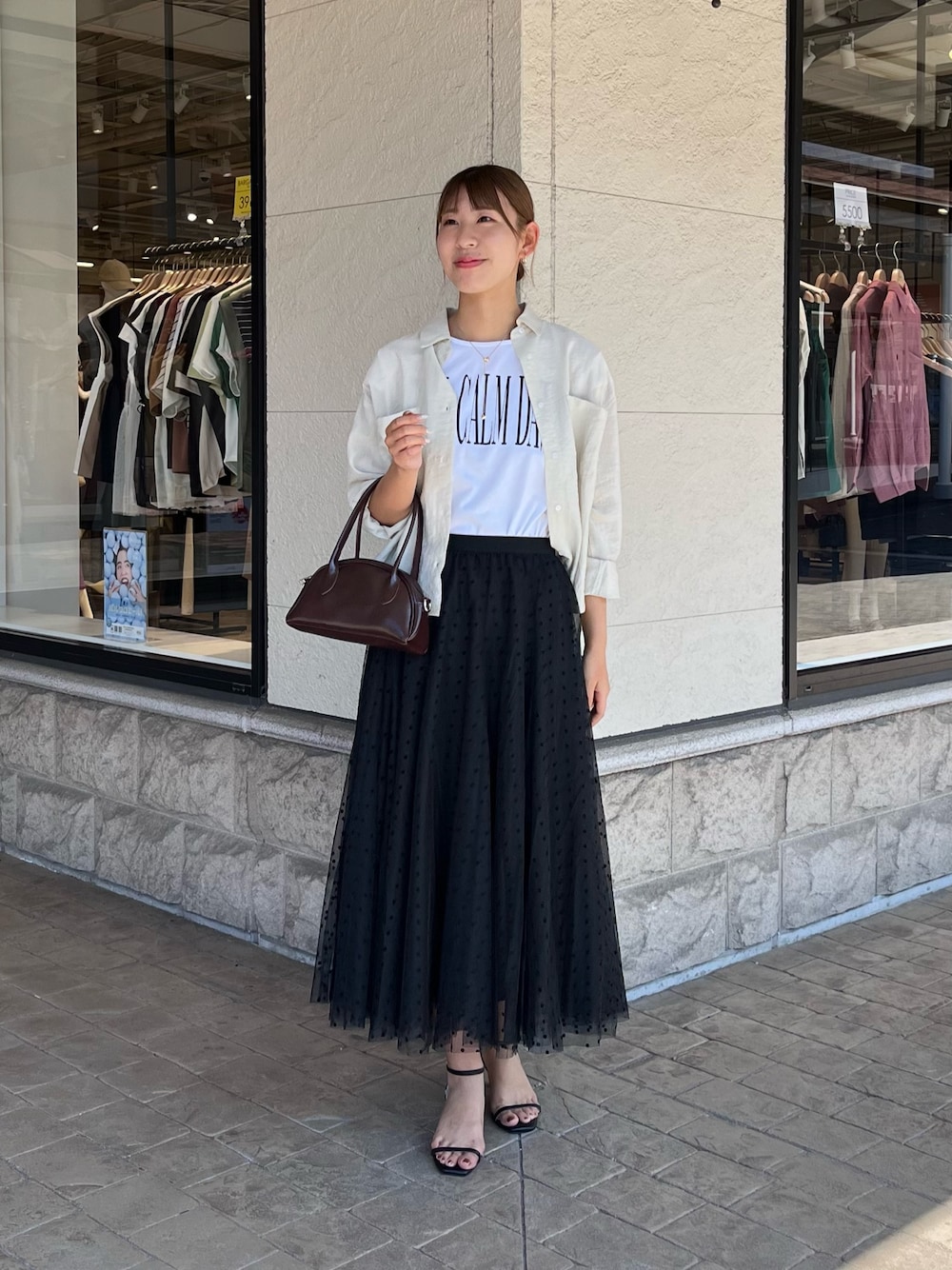 チュールスカートとリネンシャツを合わせた大人可愛いコーデ💞
