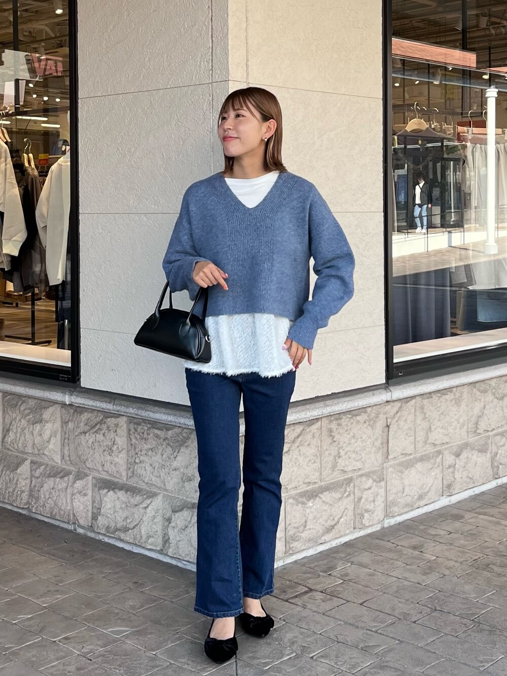 いつきのニット/セーター「Vネックニット×ジャガードペプラムカットソー」を使ったコーディネート