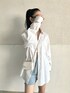 スポーツミックス👕 夏も大活躍な白シャツ☁️ ビッグシルエットが可愛い:] 最近は全体的にナチュラルめなメイクで、リップはパキッとした色味のものを使うのにハマってます🫰🏻 ロムアンドのティントリップは、パキッと発色だけど透け感もありうるツヤな唇になれちゃいます🫦