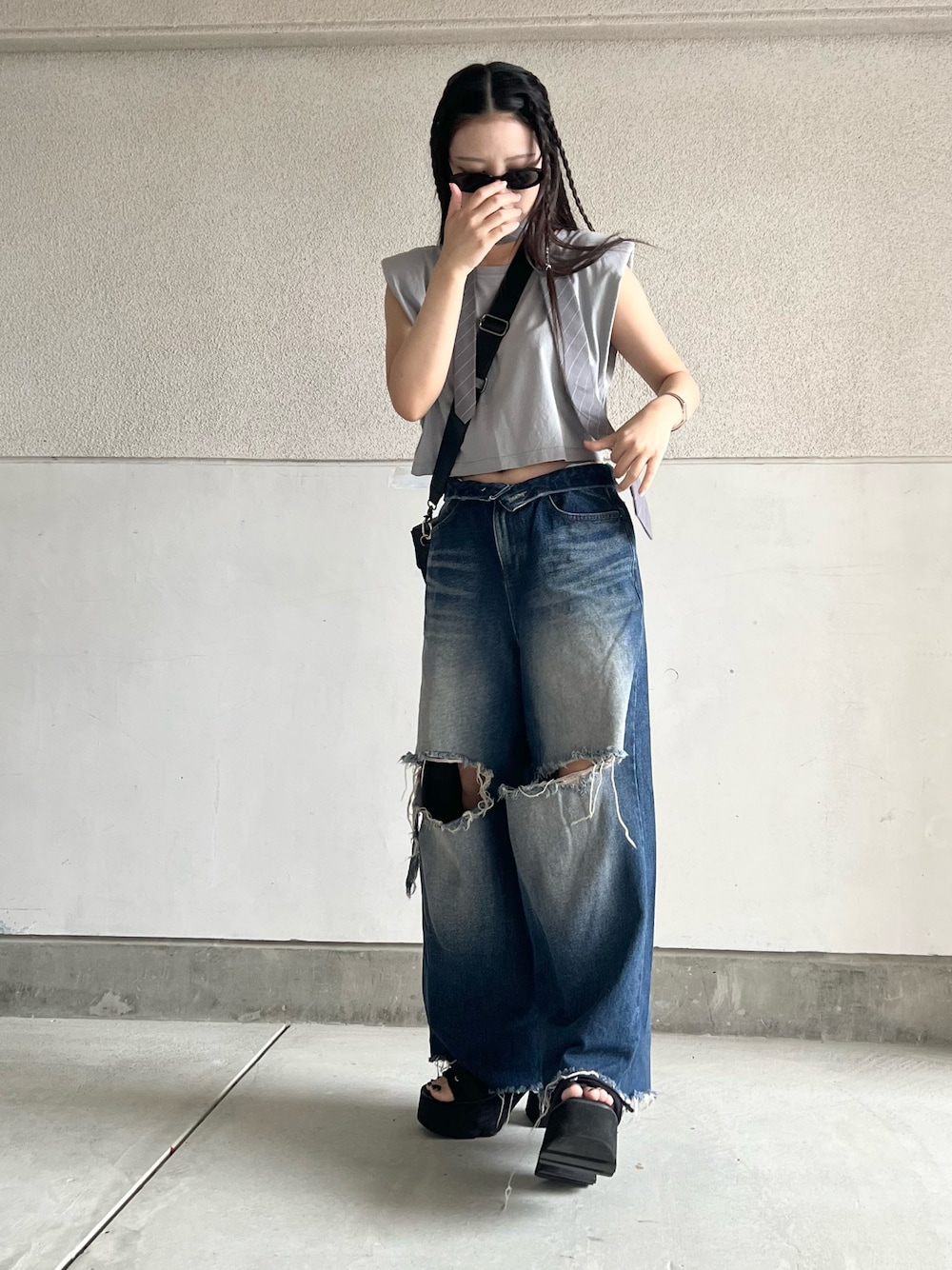 skmtmloのサンダル「シャークソール厚底ベルトサンダル」を使ったコーディネート
