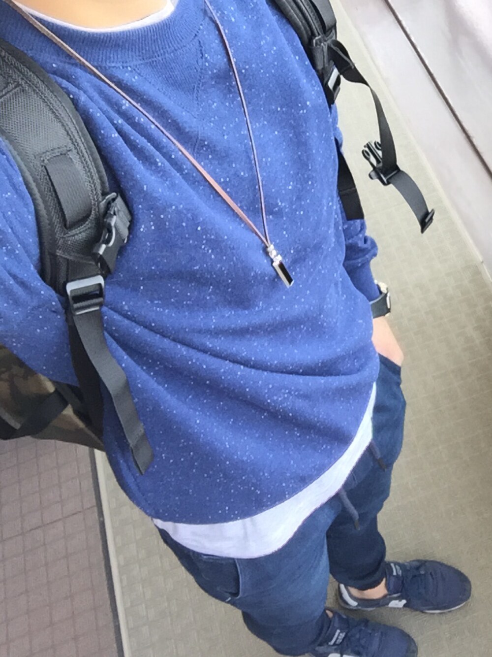 この前花見兼スポーツいってきたときです ネイビーで統一感を出しトレーナーの下に白のTシャツを入れてみました! 動きやすいジョグフィットを履いたのでとても動きやすかったです。