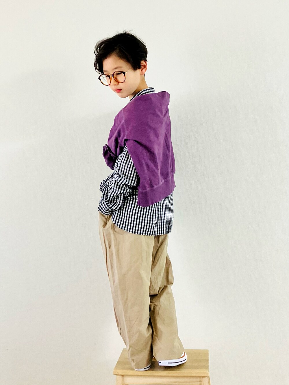 おはようございます😃 shirt👔が大好きな👦🏻 オトバナの癖パンツ どこが←紐がpurple💜なんです🤤 と TO アンティカさんのスウェットの purple💜を あわせたコーデ 肌寒くなった時に スウェットを着るんだけど そのコーデ撮るの忘れたよ😃 見てくださいまして ありがとうございます😊