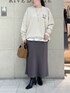 【ニット】 もっちり柔らかな肌触りのロゴニット。 メンズライクなサイズ感でリラックス感のある着心地! インナーに白Tを入れてチラ見せするのがオススメスタイルです◎ 【スカート】着用38サイズ 控えめな光沢感のサテンスカート。 ウエストゴム仕様で窮屈感がなく、腰周りにもゆとりを持って履けました♪ お家で洗えるのも嬉しいポイント! ブラウスで綺麗めはもちろん、Tシャツやスウェットでカジュアルにも◎