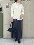 【ニット】 ウール100%の柔らかな着心地が魅力のニット。 ボトルネックデザインで首元までしっかりと暖かく、タートルネックが苦手な私もリラックスして着れました♪ 程よくゆとりがあるサイズ感ながらも、着丈はお尻にかかるくらいなのでインしないスタイルも綺麗に決まります! スカートでキレイめ、デニムやパンツでカジュアルにも◎ 【スカート】着用38サイズ シルクのような肌触りのマーメイドスカート。 ウエストゴム仕様で窮屈感がなく、腰周りにもゆとりを持って履けました♪ お家で洗えるのも嬉しいポイント! ブラウスで綺麗めはもちろん、Tシャツやスウェットでカジュアルにも◎