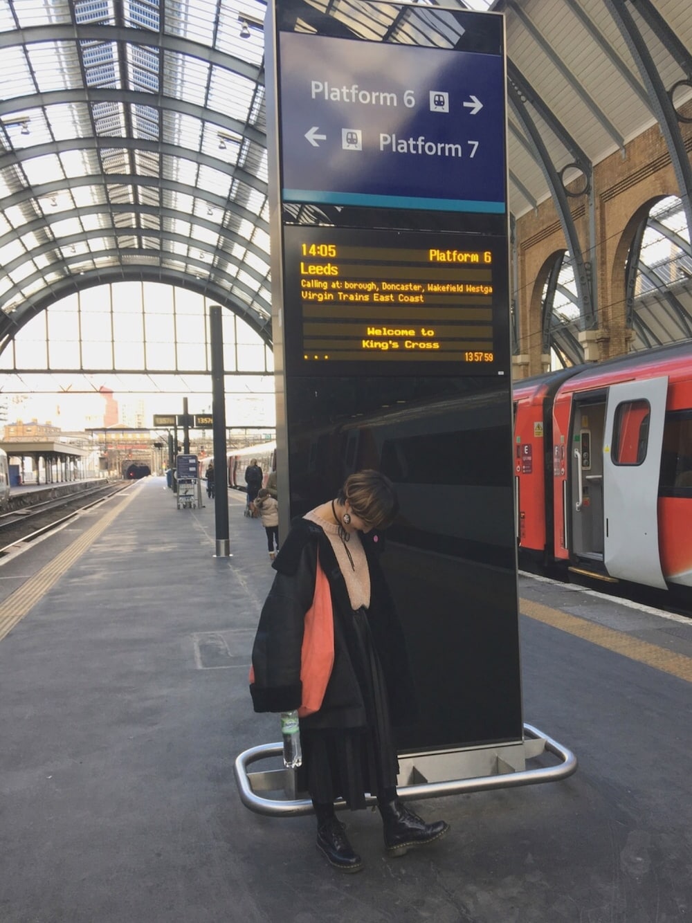 今イギリスに来ています🇬🇧 イギリスのご飯は美味しくないって聞いてたけど、今のところわりと美味しいもの食べれてます😛💗 昨日ノッティングヒルで入ったお店で買ったバッグと古着屋さんで買った羊の皮のコートを着用🐑👜 この駅はハリーポッターの9と3/4番線がある駅、Kings Cross station🚇