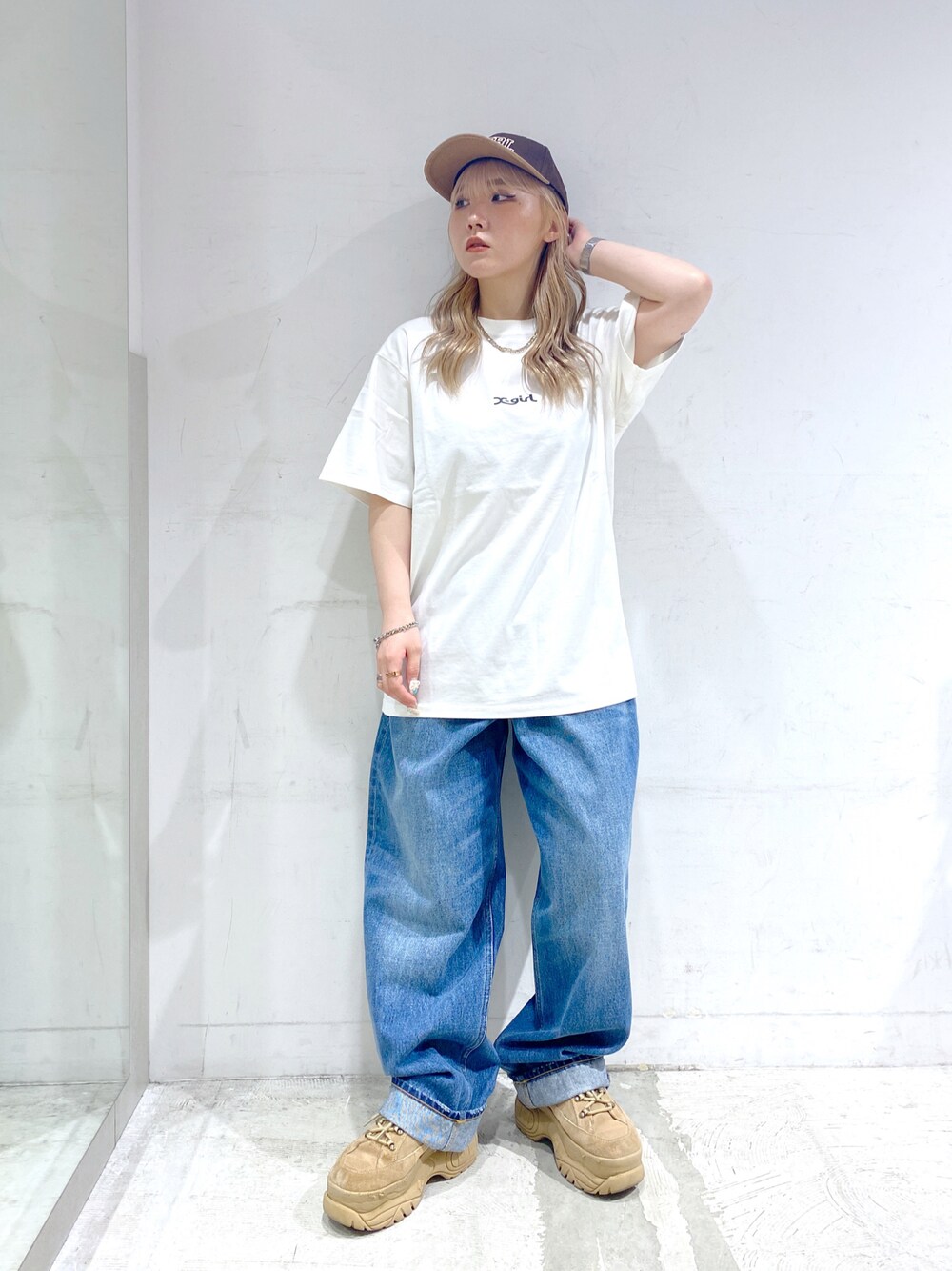 進藤さくら(X-girl Store)のTシャツ/カットソー「FACE BOX LOGO S/S TEE/フェイスロゴ バックプリントTシャツ」を使ったコーディネート
