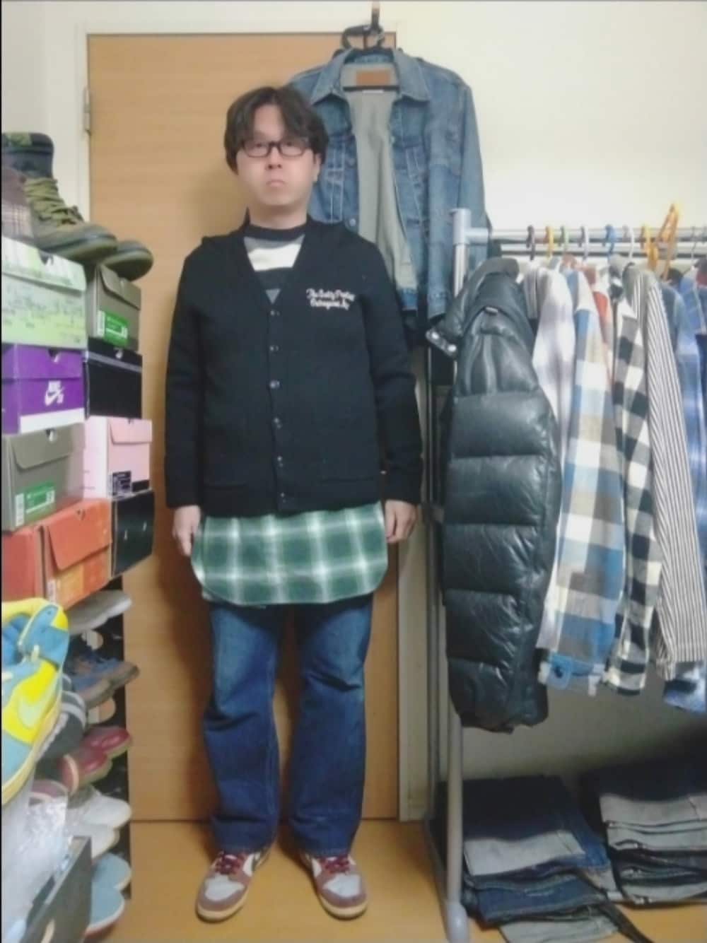 カーディガン…ワコマリア ニットセーター…スタンダードカリフォルニア シャドーチェックシャツ…ナンバーナイン デニムパンツ…At Last & Co スニーカー…Nike SB Dunk Low "Shanghai". オシャレに決まるナンバーナインのシャドーチェックシャツを”腰巻き“から、第1ボタン以外開けて”ラフ巻き“にして、さらに反対に結んで、スカート風に巻き付けて、常識に囚われない逆転の発想で“ユニセックスコーデ”を演出してみました。各アイテム別に、ワコマリアのカーディガンでルード感のチョイ悪さを出し、スタンダードカリフォルニアのニットセーターとAt Last & Co のデニムパンツでアメカジのカジュアルさを、ダンクSB"Shanghai" でオリエンタルを表現してみました。 ※Instagramには主にWEARで着用しているファッションアイテムを中心に投稿しています。