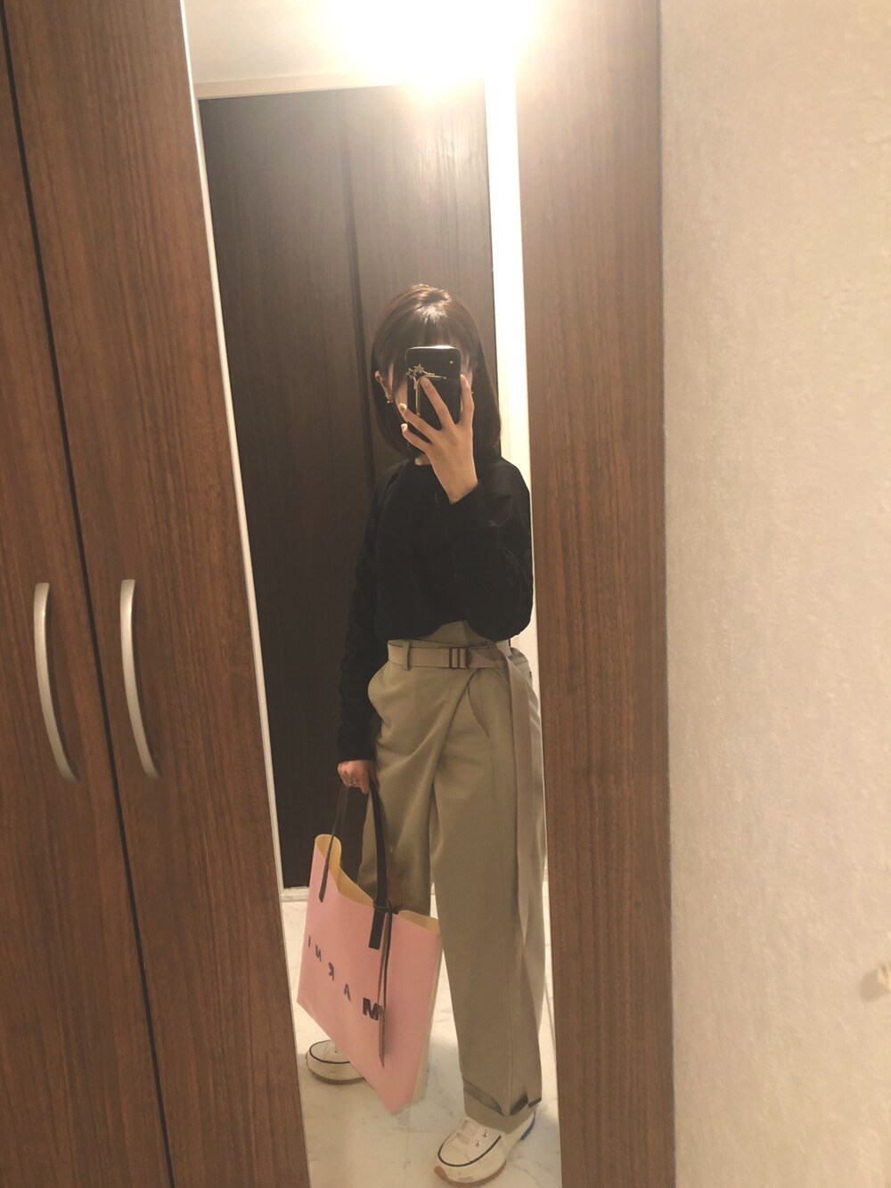 スニーカーはJ.W.Andersonとconverseのコラボのやつ★ トップスはよく見ると腕とサイドが、くしゅくしゅしててかわいい。