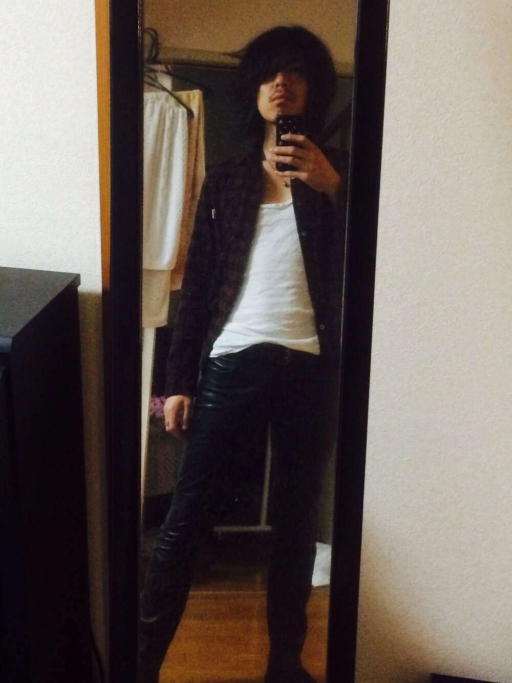 ズボンはお気に入りのラウンジリザードのレザーパンツです。