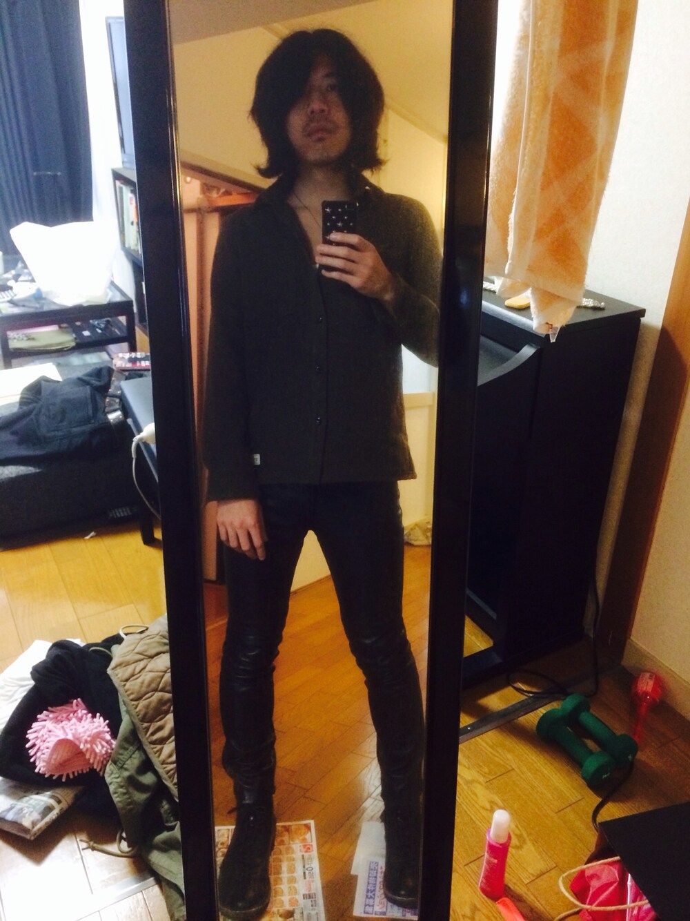 ハギ コウヘイのその他パンツ「ラウンジリザードのレザーパンツです。 後ろのポケットはサイフを入れるために、片方のチャックをとりました。」を使ったコーディネート
