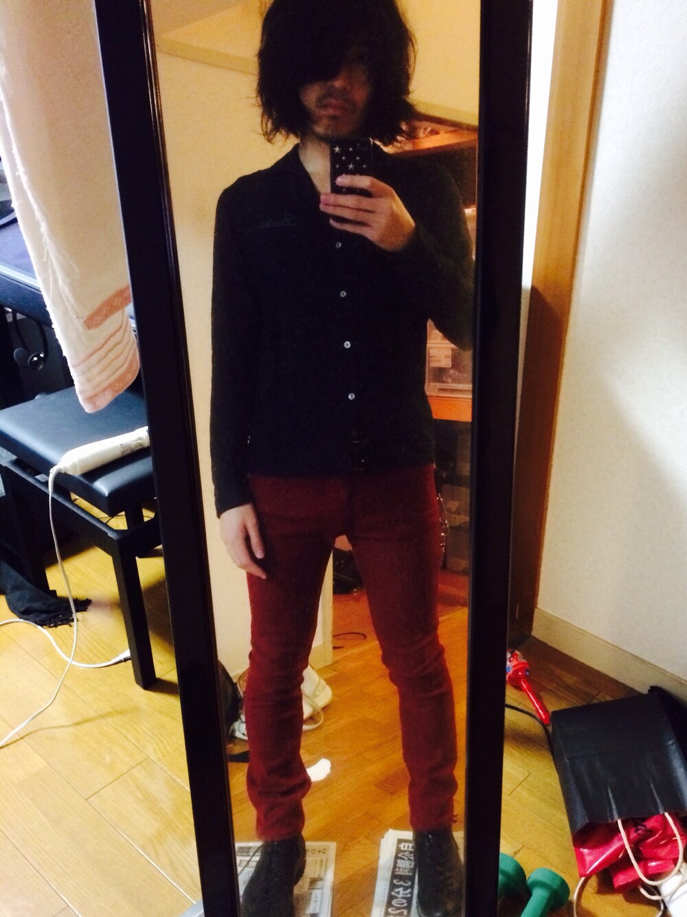 随分前から欲しかった、レッドジーンズに合わせたコーデです。