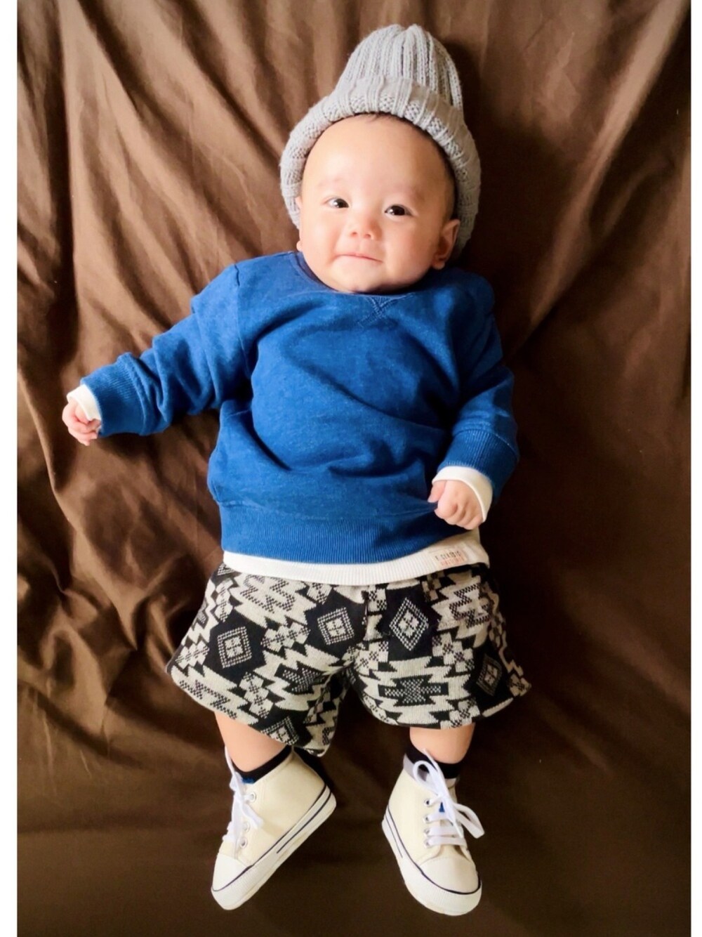 ノルディック柄コーデ✨ ▸100均ニット帽 ▸デニム風スウェット ▸ワッフル生地のインナー ▸ノルディック柄ショートパンツ ▸breezeの靴下 ▸コンバース風の靴