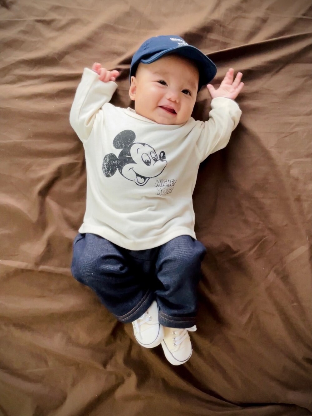 シンプルミッキーコーデ ▸バースデー ミッキーキャップ ▸ミッキーロンT ▸デニム風ズボン ▸コンバース風シューズ 外出自粛だから全然外出てなくて、ウェアも更新が止まってました😂 久しぶりの外出は、乳児検診笑😂 早くお外いっぱいお出かけさせたいな〜! ずーっと44センチサイズで、ツバが柔らかくて、サイズ調整出来て、可愛いキャップ探してて、やっとバースデーで見つけた〜😍💕他にも色違いで、あったからそれも欲しいな〜!