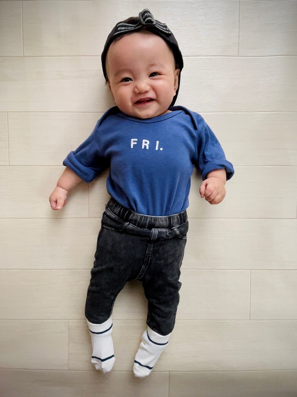 ▸バースデー キャップ ▸西松屋 FRIDAYロンパース ▸H&M スキニー ▸西松屋LINEソックス 金曜のコーデにて。 お家ではロンパース、出かける時にズボンとソックスとキャップつけるだけ\(^^)/ 楽ちん😊
