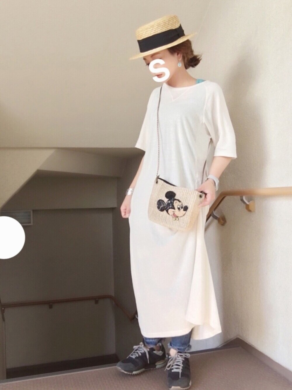 ☺︎*♡ シロ × ミズイロ × クロ 今年もミッキーバッグ 🐭 ワンピース☺︎RNA デニム☺︎LEE 靴☺︎adidas Tシャツとデニムと ターコイズ この組み合わせがダイスキです◎