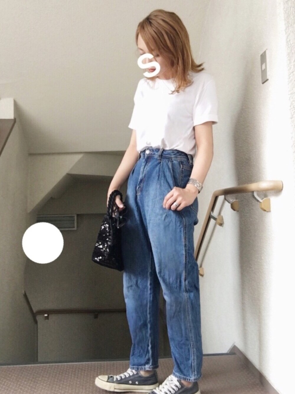 ☺︎*♡ カラーが落ちて 金髪が出始めたらやりたかった Tシャツとデニムだけ○ 髪の毛も素。のままがよかったけど 暑かったので 青ベロアリボンつけていきました○ デニム☺︎GU 靴☺︎コンバース カバン☺︎used リボン☺︎手芸屋さん 猫背